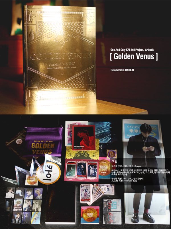 「こんにちは。OAO KAIです。Growl以降「Overdose」と「Call me baby」と「Love me right」までミリオンセラーを記録し、第二の山も征服したジョンインの姿を集め アートブックに記録しようと思います。ジョンインにとてもよく似合う"金色"とジョンインが生まれた"金曜日"をモチーフにした今回のアートブック、<Golden Venus>は写真のセレクトやクロップ、補正など、今までと少し違った技法で作成する予定ですので、多くの関心と声援をお願いいたします。」